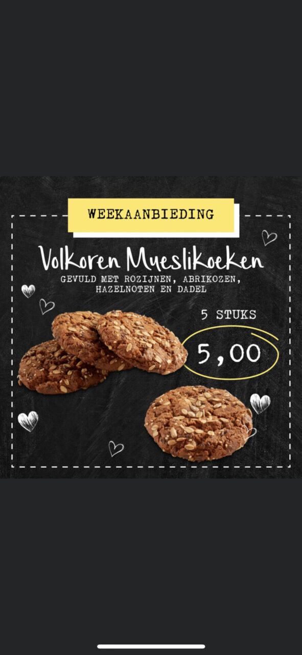Home » Shop » Weekaanbieding » Volkoren meuslikoeken 5 stuks 5 euro.